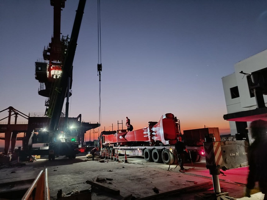 日夜鏖戰(zhàn)筑港口裝卸力量!邦立重機200噸軌道門座式抓料機浙江碼頭安裝攻堅進行時