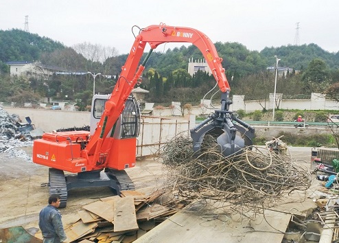 ●可以選擇配備多種工作裝置(抓斗)實現(xiàn)廢鋼、圓木、木屑、原煤、草料等多種物料的抓取、裝卸